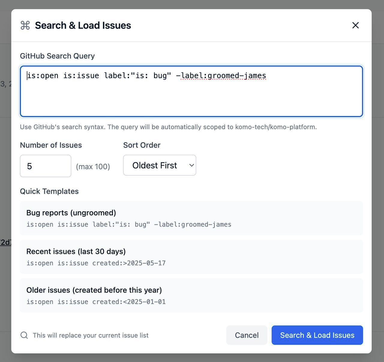 the app lets me fetch the exact batch of issues i want to work through. then i work through editing, refining and prioritising them.