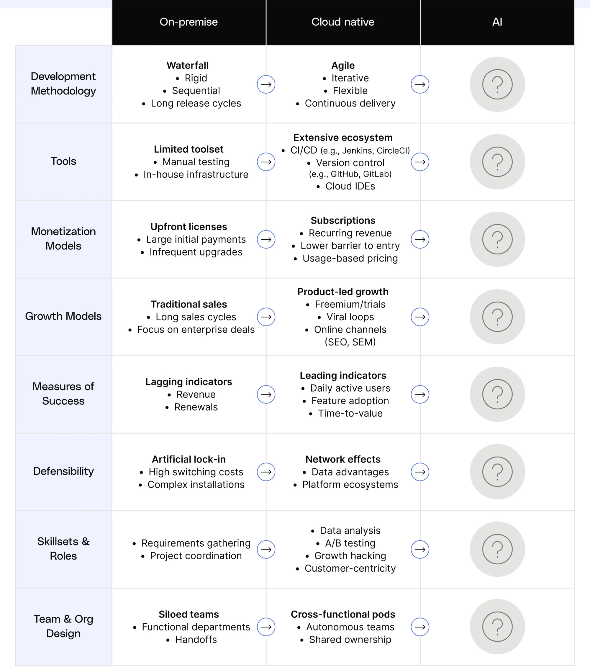 “Every decade or so, a technological shift comes along that doesn't just change how we build products—it rewrites the entire playbook. The shift from on-premise to cloud wasn't merely a hosting change; it revolutionized every aspect of how we build, ship, and grow software products. AI represents a similar inflection point”. - Brian Balfour.